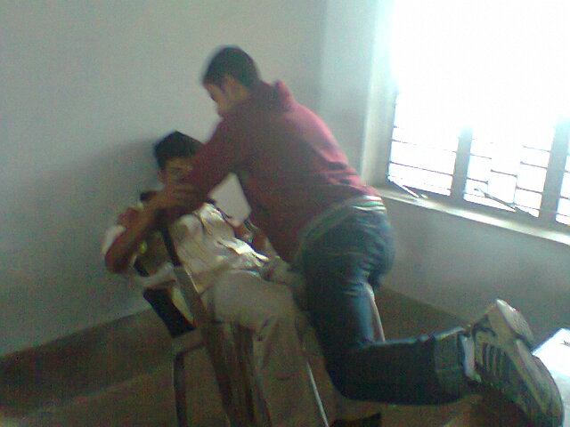 Me with my friends in a classroom,most probably in 310.... Enjoyment together.....